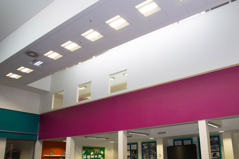 Situated above a large open plan hall/learning space, the school’s spacious, first floor corridor posed the ideal location to create two new offices. Not only did the corridor offer ample space, the new rooms would provide acoustic sound proofing to the hall below.
