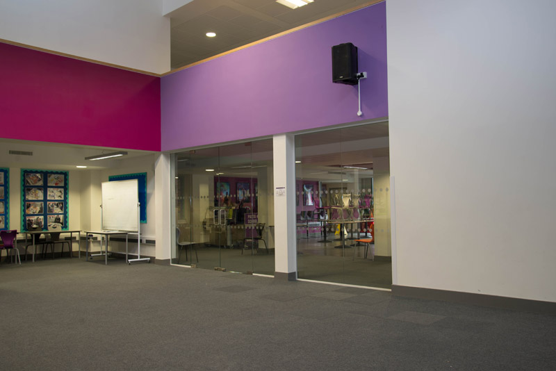 Further work to address the sound quality took place in the main hall/open plan learning space. The JBH Refurbishments team installed 10mm thick toughened glazed partitioning and doors to the recesses within the hall. Consequently, the once redundant recesses are now a practical learning space for the pupils and teachers.